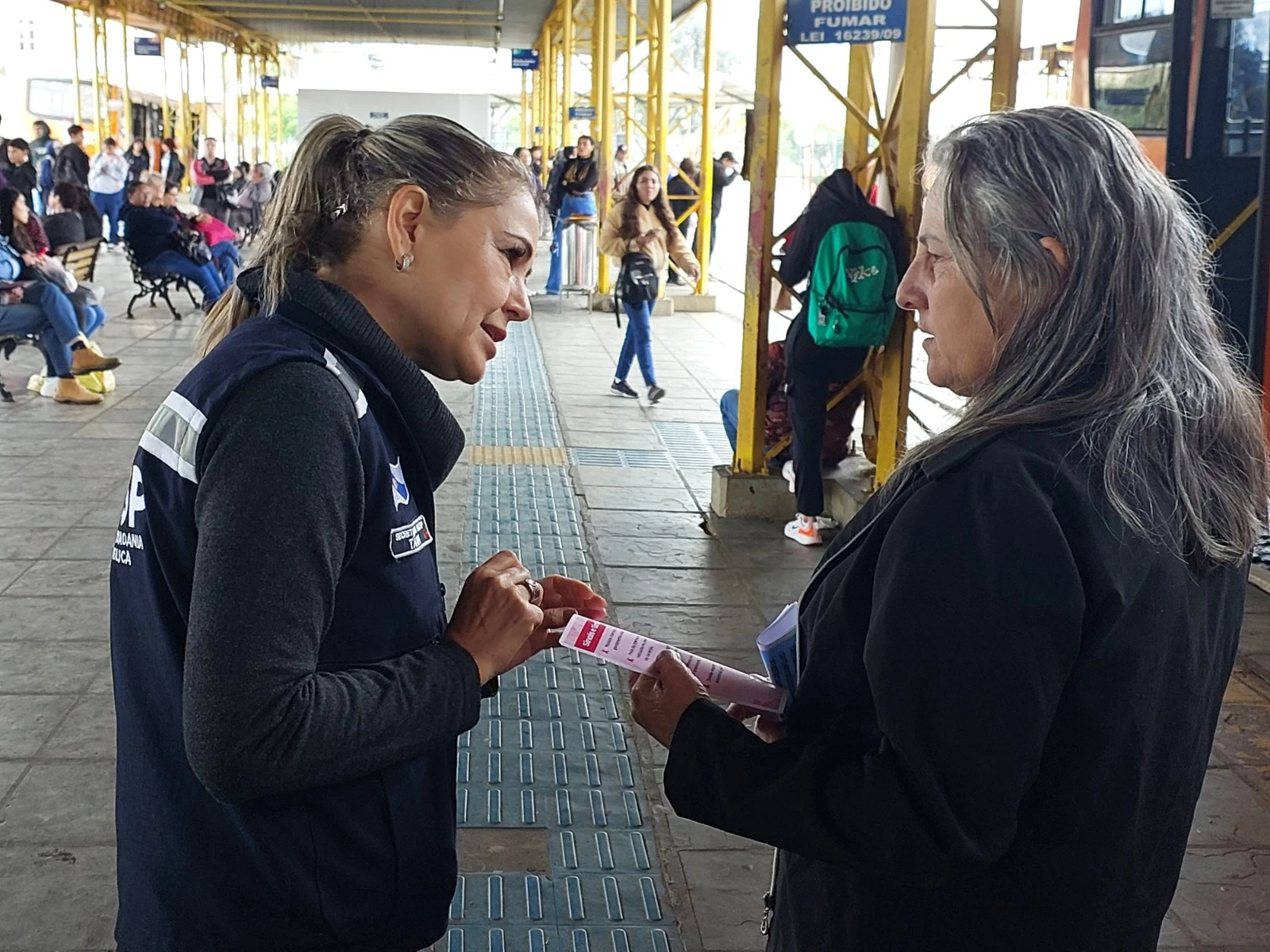 A Prefeitura de Ponta Grossa, através da Secretaria de Cidadania e Segurança Pública, promoveu, nesta quinta-feira (10), uma ação alusiva ao Outubro Rosa. A atividade, realizada no Terminal Central, reuniu agentes de trânsito, da Guarda Civil Municipal e da Defesa Civil, além do departamento de Cidadania da pasta.