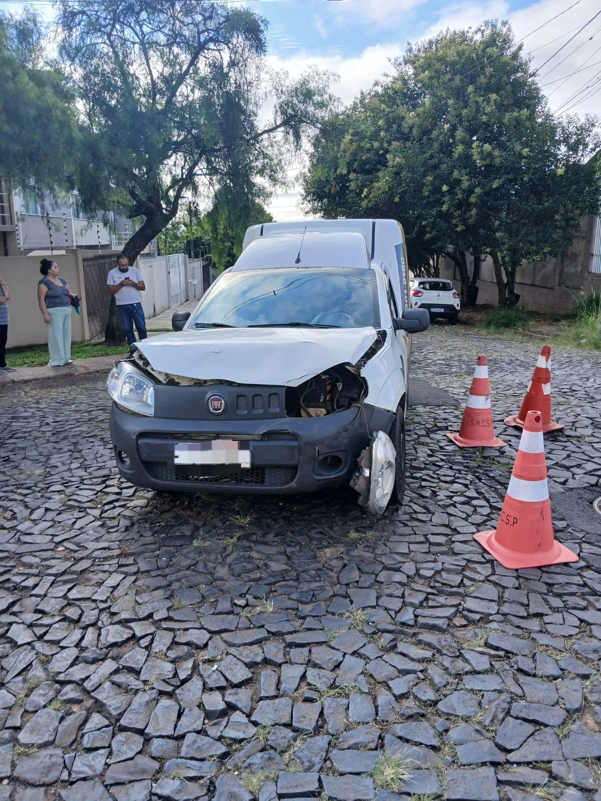 Uma equipe do Patrulhamento de Trânsito Viário foi acionada para atender um acidente de trânsito no cruzamento das ruas Octávio de Carvalho e Alfredo Guimarães Vilela, no Jardim Carvalho, em Ponta Grossa, na manhã desta sexta-feira (10).