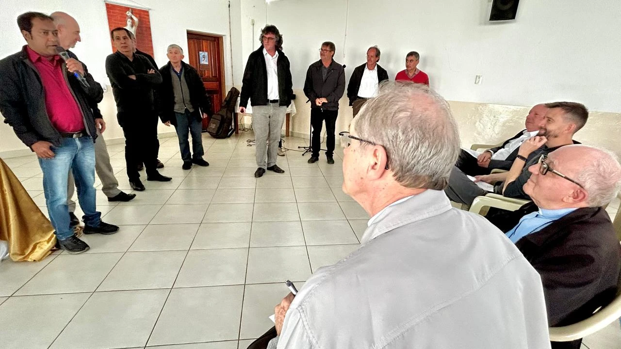 Uma reunião geral do clero diocesano com a presença de dois bispos: Dom Sergio Arthur Braschi e Dom Bruno Elizeu Versari. O bispo nomeado para a Diocese de Ponta Grossa fez questão de acompanhar esse segundo encontro do ano entre padres, religiosos e diáconos, tanto que solicitou até a mudança da data da reunião, que estava inicialmente marcada para ontem (20). O comparecimento do novo bispo fez com que o salão da Paróquia São Sebastião, em Ortigueira, estivesse lotado - perto de 80 pessoas - e que todos permanecessem atentos até o final, mesmo com a extensa pauta de 22 assuntos. O encontro iniciou às 8h30, com o café da manhã, e terminou logo depois das 13 horas.