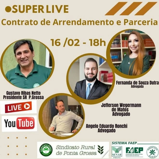 D’Ponta News promovem, nesta quinta-feira (16), uma super live sobre contrato de arrendamento e parceria.