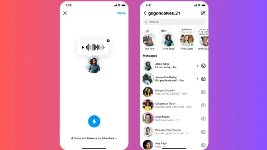 As notas do Instagram , lançadas em dezembro do ano passado, são aquelas pequenas publicações de texto que ficam no topo da aba de conversas. Com a novidade, seria possível também gravar pequenos áudios para os seguidores, como é possível ver na imagem abaixo.