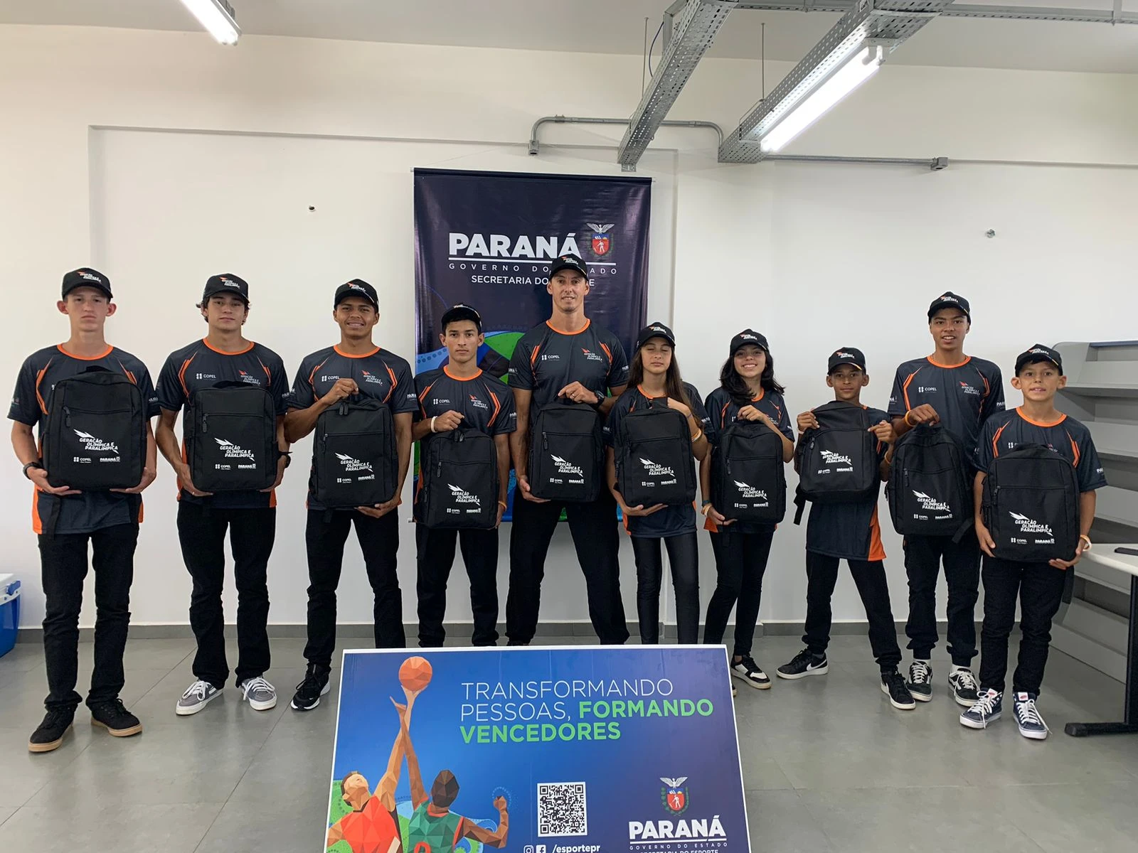 O programa de bolsa financeira coordenado pela Secretaria do Esporte e patrocinado pela Copel. Os kits contêm camiseta, garrafa de água, pulseiras, caneta, toalha, boné, mochila e adesivos.