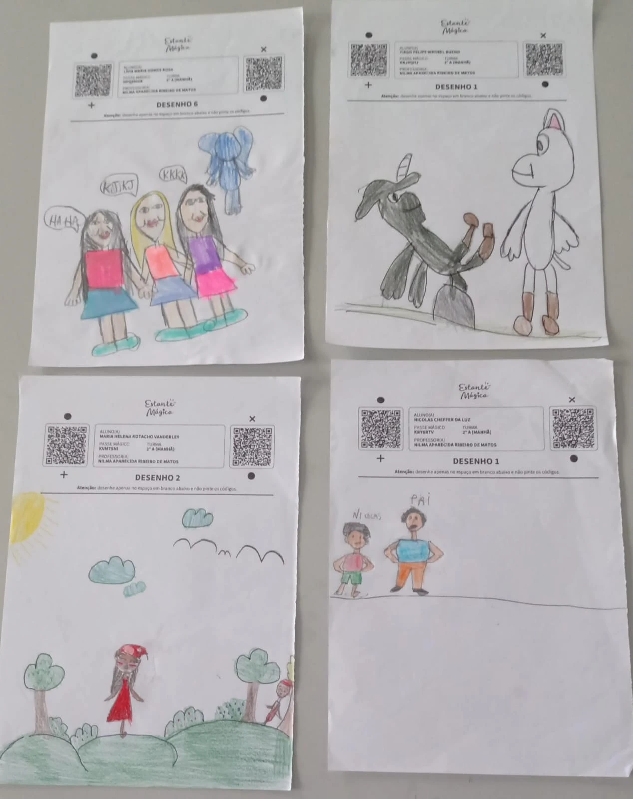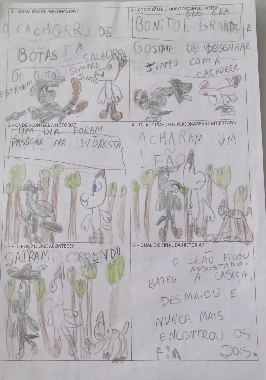 Segundo ela, é feito um trabalho em sala de aula onde as crianças escrevem e ilustram suas próprias histórias. Depois a professora envia os materiais para uma plataforma e estes são transformados em livros digitais.