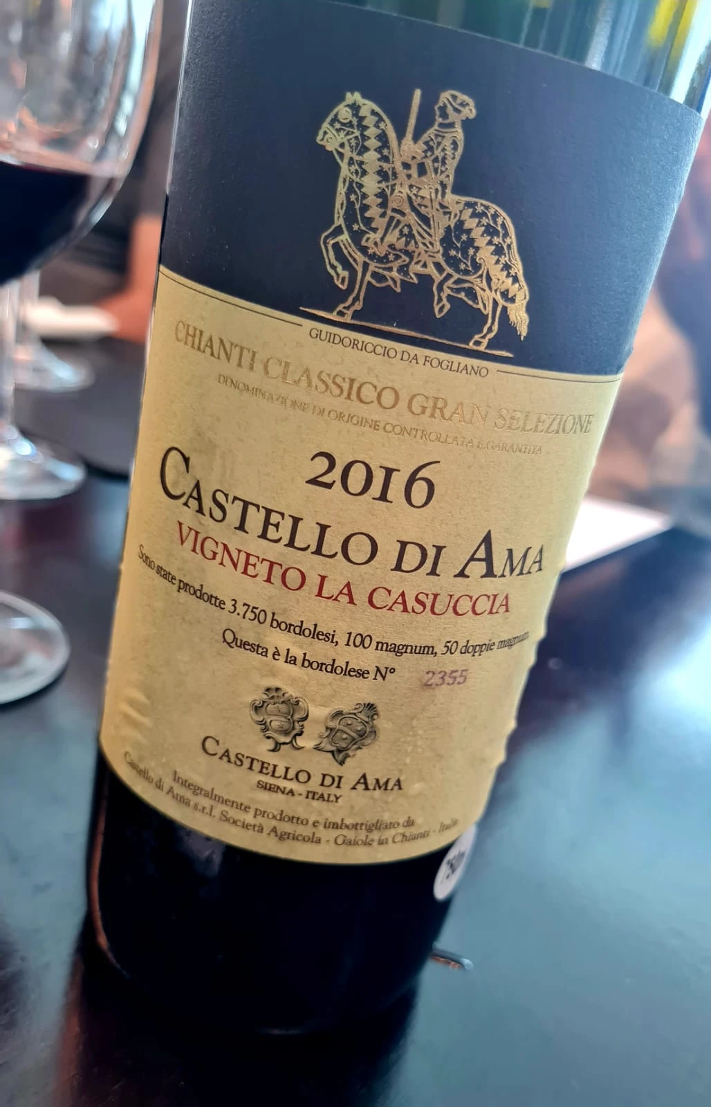 La Casuccia é um dos disputados Chianti Classico de vinhedo único de Castello di Ama e o primeiro vinho a combinar as castas Sangiovese (80%) e Merlot (20%). As videiras são antigas, algumas com quase 50 anos de idade e o vinho alia profundidade com finesse, em um conjunto incrivelmente longevo. A safra 2016 mereceu nada menos que 96 pontos de Robert Parker e 95 pontos da Wine Spectator. Nas palavras de Robert Parker, é um vinho com elegância e riqueza de tirar o fôlego. Um vinho de minúscula produção, com pouco mais de 600 caixas para todo o mundo.