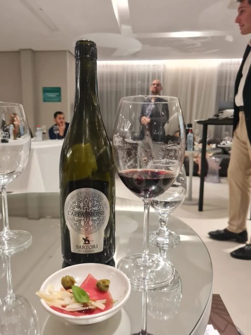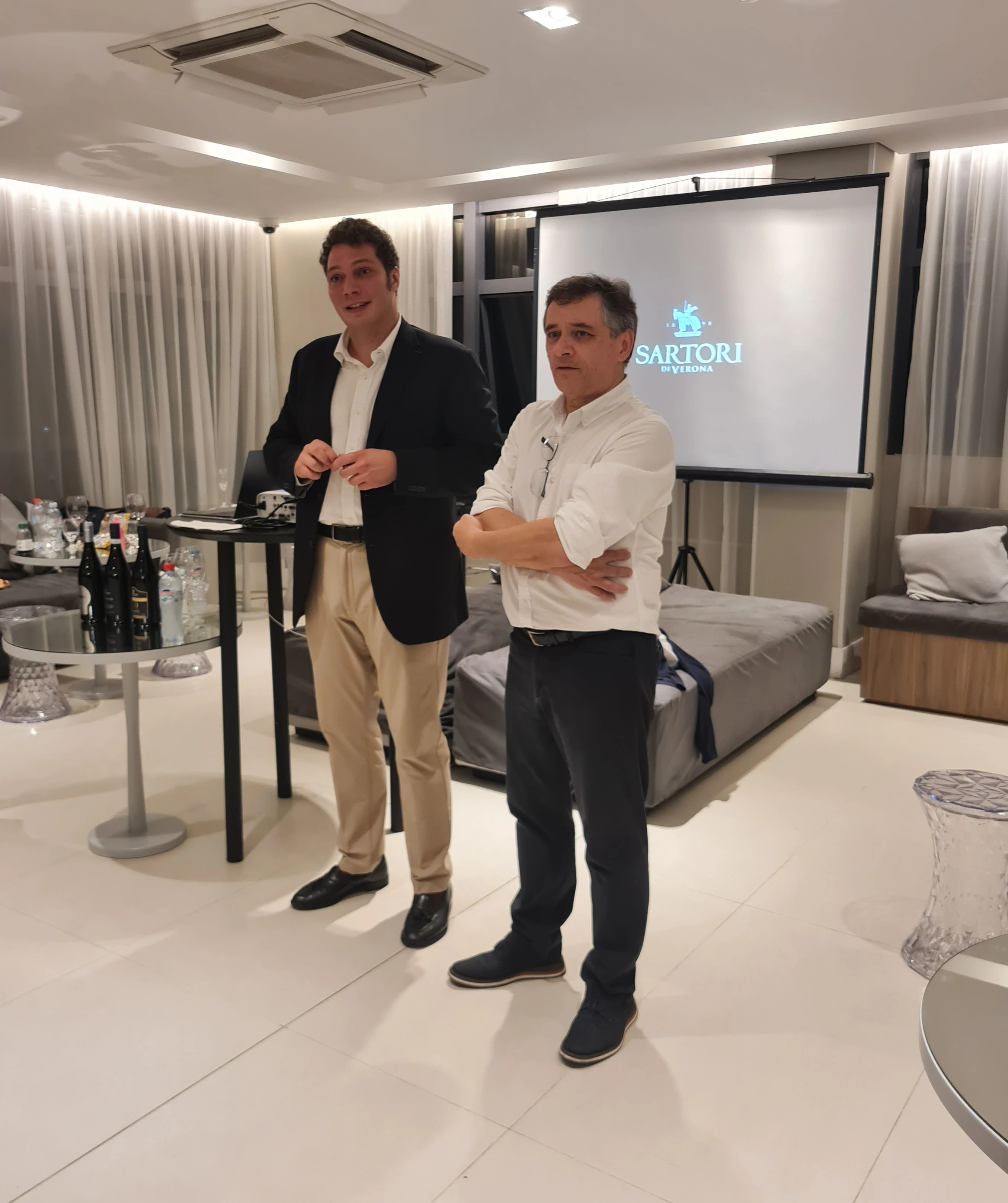 O Apassimento é uma técnica bastante utilizada pela Sartori di Verona, o termo vem do italiano e significa ‘’murchamento’’ ou ‘’secagem’’. Essa técnica envolve a secagem das uvas antes do processo de fermentação, com o objetivo de concentrar os açúcares, sabores e aromas das frutas. Geralmente, o resultado final são vinhos de alta qualidade, encorpados, com teores alcoólicos mais elevados e notas de frutas secas, especiarias e sabores intensos. Todas essas informações foram transmitidas por Giácomo Sartori que explicou detalhadamente todos os processos utilizados pela vinícola e destacou a importância do terroir no contexto geral para o resultado final dos vinhos, “os nossos vinhos são expressões autênticas dos seus terroirs individuais, fruto da riqueza da natureza e da dedicação de quem os elabora”, comentou.