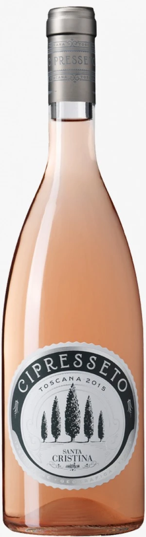 Toscana Igt Rosato: É produzido pela Vinícola Santa Cristina que pertence ao grupo Antinori. Cipresseto é de cor rosa pálido. No nariz, notas de flores de laranjeira e morangos silvestres combinam-se para formar o seu bouquet aromático fresco. Na boca é macio, encorpado e equilibrado com um final longo e frutado. Cipresseto é um vinho rosé tão delicado e harmonioso como as encostas da Toscana ladeadas por magníficos ciprestes. Seu nome e rótulo celebram seu caráter completamente toscano.