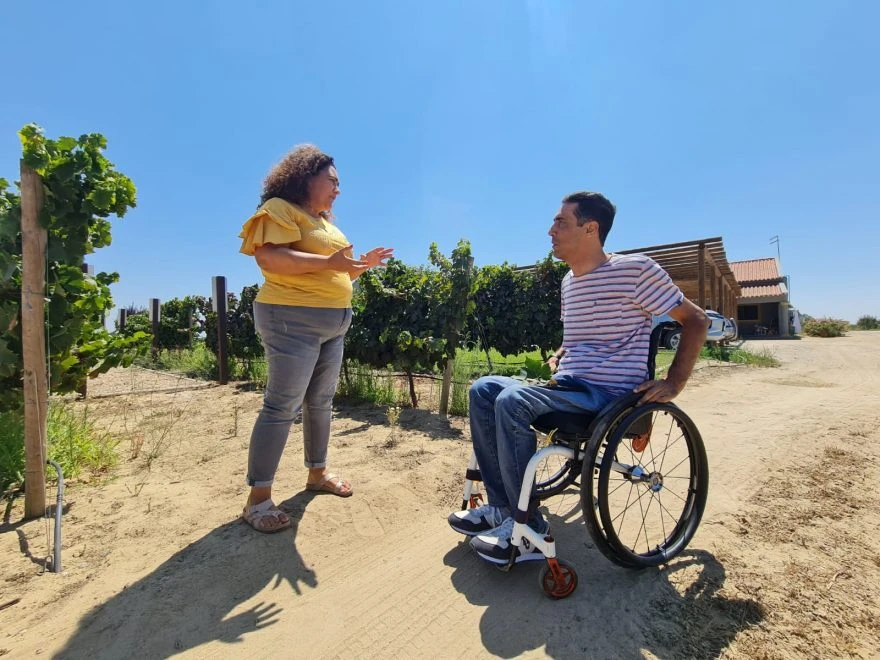 Já na entrada a estrutura e decoração são encantadoras, a mesa da recepção foi feita exatamente em uma altura adequada para que cadeirantes também possam ser atendidos fazendo seus pedidos e pagando suas despesas confortavelmente. Marta Palhoça, gerente da adega/vinícola, nos levou às instalações internas para conhecer o processo de vinificação, envase e armazenamento dos vinhos. Na parte externa pudemos visitar algumas vinhas cultivadas já na entrada da Quinta, onde os proprietários mantêm uma espécie de jardim de videiras para que os visitantes possam conhecer as variedades e seu desenvolvimento. A Quinta da Invejosa conta com banheiros totalmente adaptados, elevador para acesso a sala de eventos e degustações e mesas com dimensões adequadas para entrada de cadeira de rodas na parte inferior do móvel.