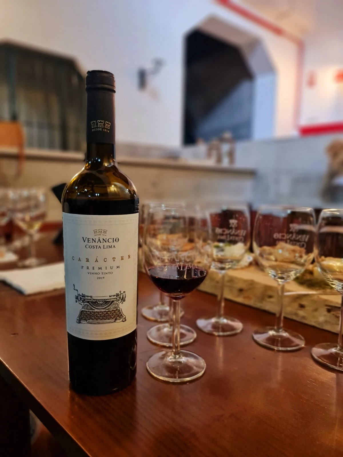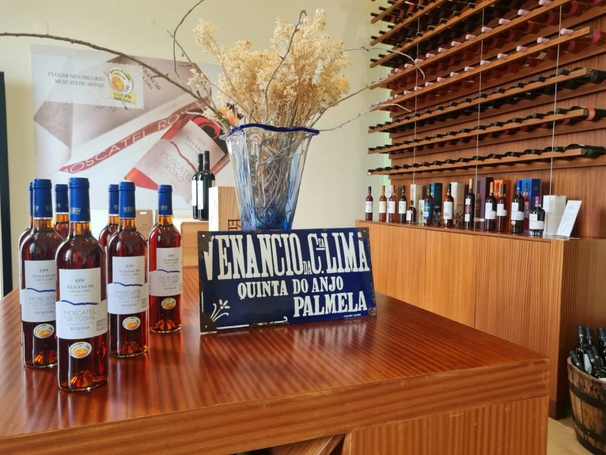 Com instalações planas e agradáveis fui recebida por Elsa Silva da equipe de enoturismo que apresentou todos os detalhes desde a criação da vinícola até sua produção e terminamos com uma prova de vinhos na Adega Velha, onde estagiam as pipas de Moscatel de Setúbal. Foi uma degustação primorosa com vinhos e produtos alimentícios produzidos na região como torta de laranja (feita com laranja amarga), compota de abóbora e canela, frutos secos, queijo fresco, queijo de azeitão e pães. Foram sete vinhos degustados, incluindo grandes ícones da vinícola: Venâncio Costa Lima Branco Premium 2019, Venâncio Costa Lima Carácter Premium Tinto 2019, Venâncio Costa Lima 4a Geração Tinto 2018, Venâncio Costa Lima Moscatel de Setúbal 2018, Venâncio Costa Lima Moscatel de Setúbal Reserva da Família, Venâncio Costa Lima Rubrica Moscatel de Setúbal 10 anos e Venâncio Costa Lima Moscatel Roxo 2015 DO Setúbal. A adega também conta com uma bela loja onde os visitantes podem escolher e adquirir seus vinhos preferidos.
