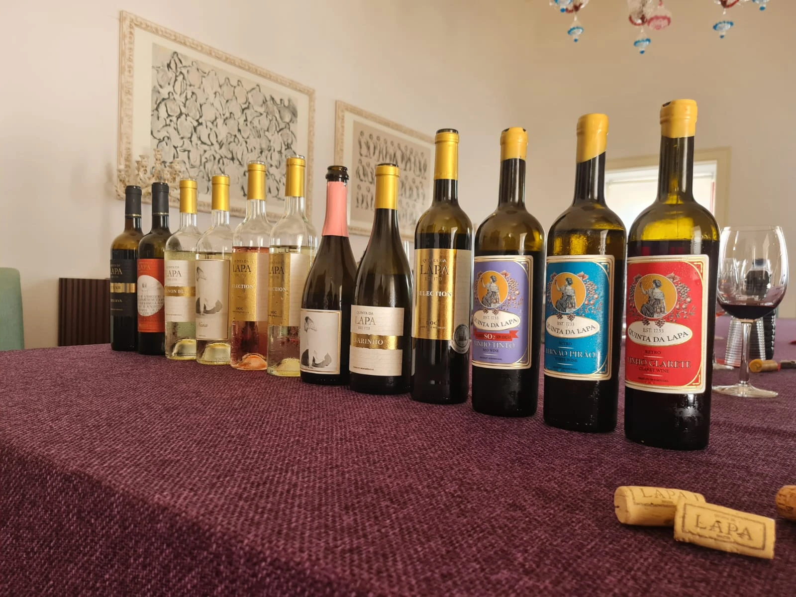Quinta da Lapa Vinho Clarete 2020, Quinta da Lapa Fernão Pirão 2021 (Orange Wine), Quinta da Lapa Tinto 2020 sem S02, Quinta da Lapa Selection Doc, Quinta da Lapa Alvarinho, Quinta da Lapa Nana tinto, Quinta da Lapa Nana 2021 branco, Quinta da Lapa Sauvignon Blanc, Quinta da Lapa Selection rosé, Quinta da Lapa Selection branco, Quinta da Lapa Reserva Malbec, Quinta da Lapa Syrah, Espumante Brut Nature Nana 2018 rosé, Espumante Quinta da Lapa Doc Reserva Brut Nature 2017 branco.