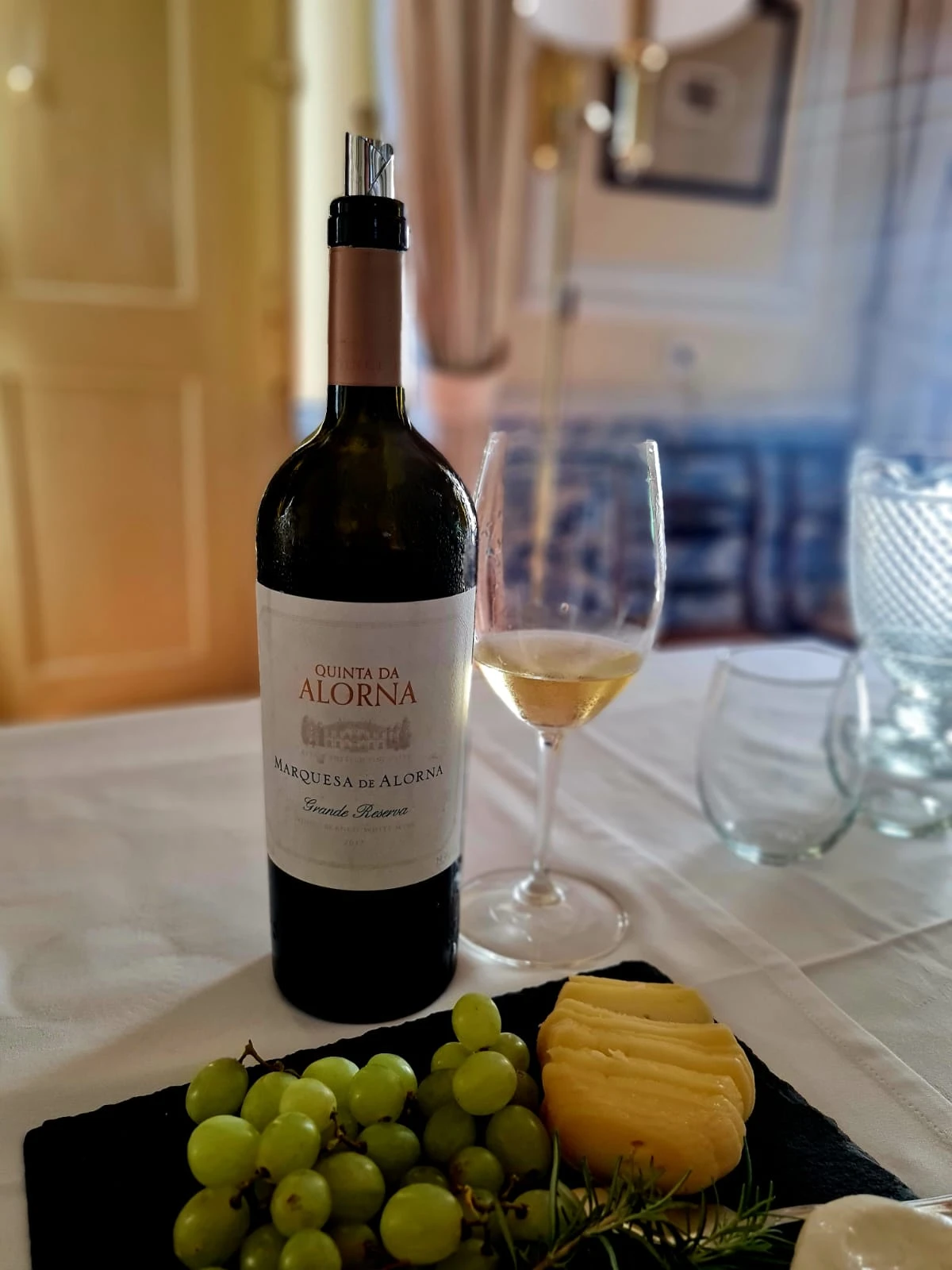 A Quinta conta com um Haras para atividades particulares e um Palácio admirável que ainda é utilizado pela família aos fins de semana e onde tive a honra de ser recebida para uma degustação elegantemente preparada por toda a equipe, degustamos o Quinta da Alorna Colheita 2021 branco, Quinta da Alorna Reserva Arinto e Chardonnay 2020, o branco Marquesa de Alorna Grande Reserva 2017, Quinta da Alorna Reserva Touriga Nacional e Cabernet Sauvignon 2018 tinto e o Marquesa de Alorna Grande Reserva 2016 também tinto, uma degustação ímpar e rica de informações.